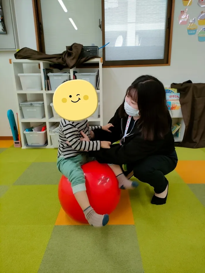 今日はバランスボールをつかったうんどうをしました。
